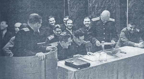 Президиум слёта передовиков производства в лагерном отделении № 6.