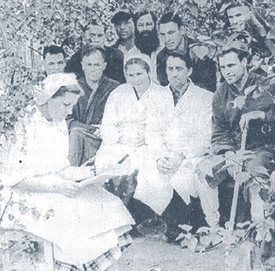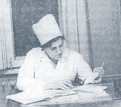 Санитарную службу возглавляла Дворецкая Берта Абрамовна. Старшей сестрой была Лушня Мария Ивановна, лаборантом – Гордеева Вера Кузьмовна. Дежурные сестры – я, Давыдова, Гавриленко, Игнатова и другие. В хирургическом отделении работали Грушина (Слоква), Харина (Пошехова).