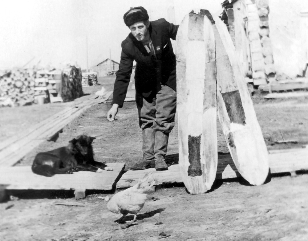 Наутро я никак не мог завести мотор — хоть плачь! Оказалось, что «всего-навсего» зажало где-то шланг, бензин не поступал. К вечеру все же добрался до Костино (ранее между Мироедихой и Костиным располагался еще станок Мельничное, где жил прежде мой кораблестроитель — дед Осипов. Я подробно записал рассказы и его, и старушек из Мироедихи об охотничьих зверях и птицах тех мест). Недавно переименованный Костинский колхоз (был им. Сталина, стал «За мир») возглавлял Кондратий Андреевич Бихерт — из ссыльных поволжских немцев. По его словам, этот колхоз уже «поглотил» пять своих соседей (объединяли постепенно), а теперь и сам дышит на ладан, осталось полтора десятка людей.