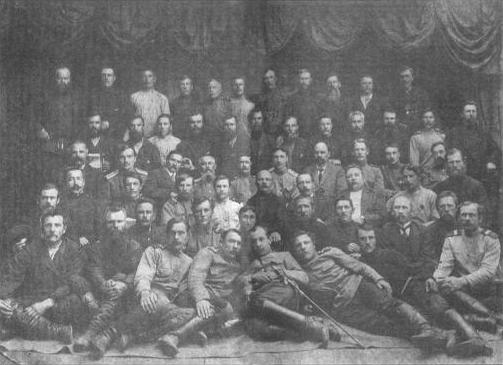 Станичный сход казаков ст. Соленоозерной. В верхнем ряду, пятый справа - И.Н.