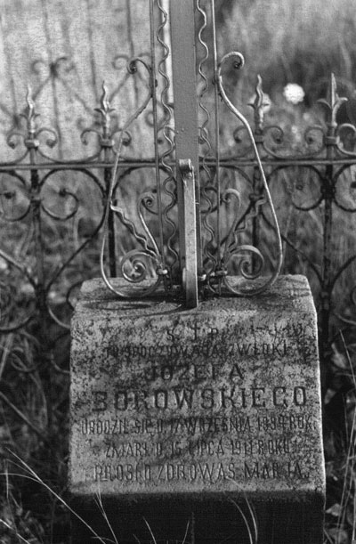 S+PTu spoczywają zwłoki Józefa Borowskiego urodzil się d.17 wrzesnia 1894 roku zmarł d. 15 lipca 1911 roku prosi o zdrowaś Marja |