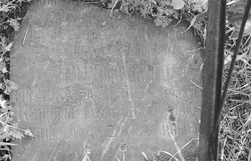 Дворянин Кiесской ГубернииГустав Николаевич Островский Род. 5 мая 1842 года Сконч. 5 сентября 1910 года 64 лет Жена его Марiя Ивановна Род. 5 мая 1846 года |