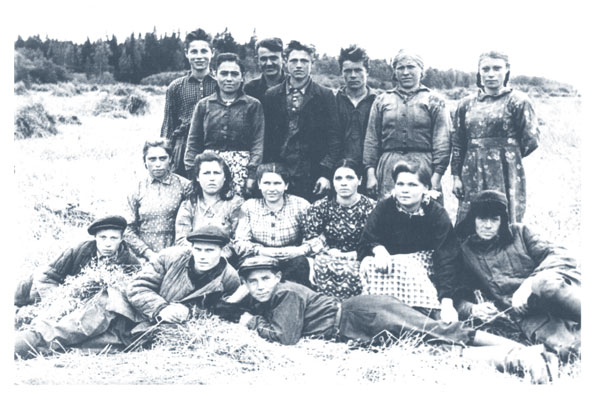 А вот что рассказывает Александра Арсентьевна Вавилова о работе в колхозе в военные годы: «В военное время зимой валили лес, обрезали сучья, пилили поперечными пилами дрова. Норма составляла 10 кубометров в день на двоих. Четыре зимы возила сено. На двоих (я работала в паре с Вавиловым Алексеем Ильичем, позднее – с Шурой Малюковым(ой) было 7 лошадей. Уедем в поле, загрузим все семь подвод сеном, закрепим каждый воз бастриком и возвращаемся в деревню».