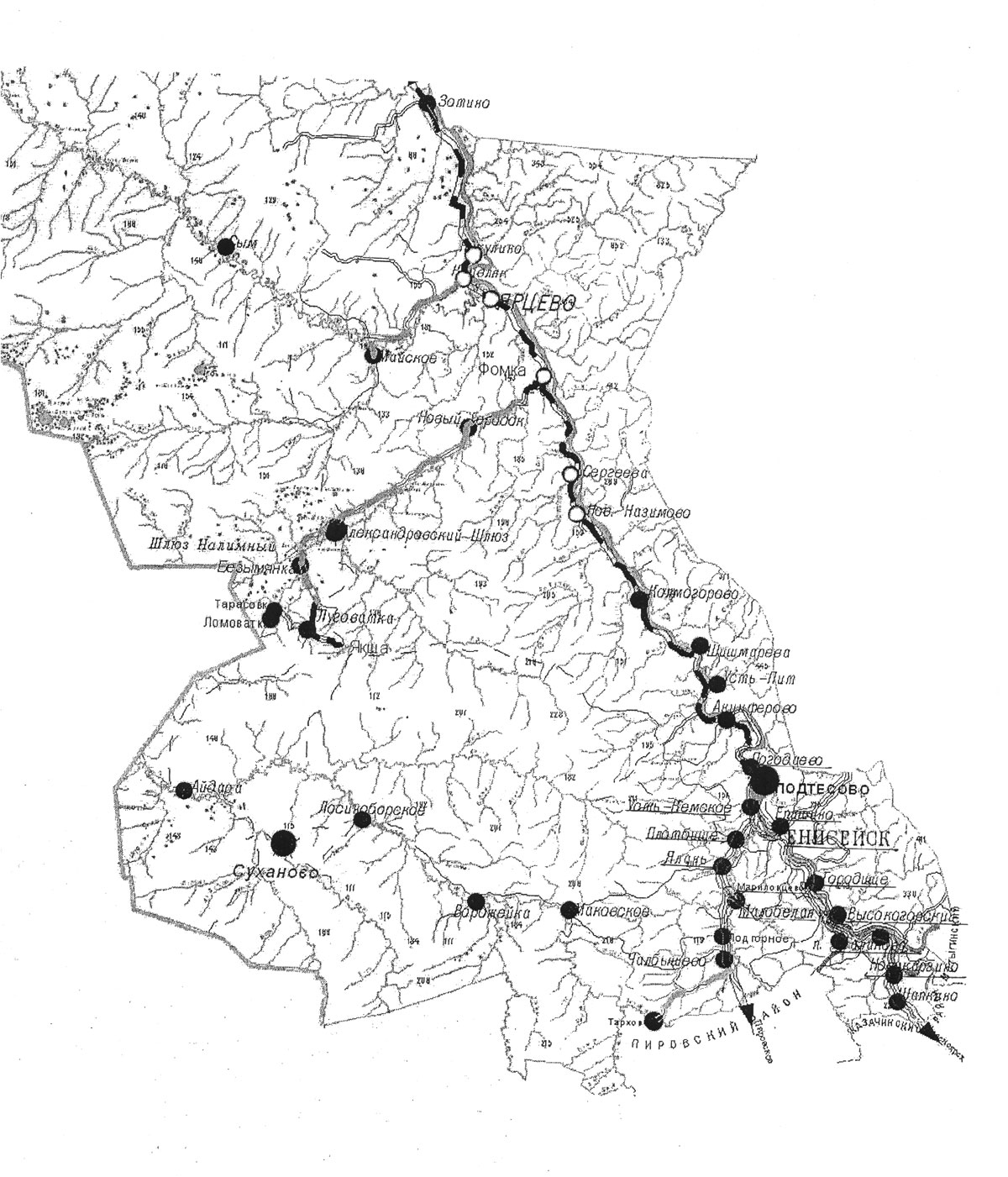 Следует отметить, что речь в исследовании о принадлежности населённых пунктов к Енисейскому району будет идти на момент 10.10.1941 года, поскольку границы его видоизменялись: так до 1943 г. с.Ярцево относилось к Туруханскому району, с 1941 года был выделен Ярцевский район, и в 1957 г. Ярцево и близлежащие села влились в Енисейский район.