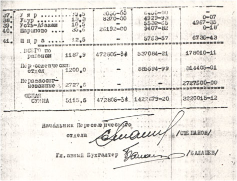Как таковых распорядительных документов на этот счет в архивных документах обнаружить не удалось , но в похозяйственных книгах записаны немецкие семьи: Брух – 5 чел., Вагнер – 6 чел., Шлюндт – 8 чел., Бирих – 8 чел., Беккер – 7 чел., Кайзер – 4 чел. и др.(9)