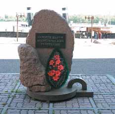 Открыт в ноябре 1991 г. (Фото Ф.Романенко, 2009)Тем временем репрессии затронули и полярников будущих: 16 мая 1938 года Комиссия НКВД и Прокуратуры за участие в контрреволюционной националистической организации польской молодежи приговорила к расстрелу 24-летнего курсанта курсов полярных работников Главсевморпути Б.Б.КОЛЮДУ. Между тем 18 мая специальная Судебная коллегия Верховного суда ЯАССР приговорила к расстрелу «за связь с врагами народа и вредительство в системе Якутского управления ГУСМП» его начальника Ю.М.ЛИССА (другое написание фамилии – Лисе) (ГЕТЕРМАНА); 20 декабря 1940 года Президиум Верховного Суда СССР заменил расстрел двадцатью годами лагерей. Ю.М.Лисс был отправлен в лагерь в Верхоянский район Якутии, входящий в систему Северо-Восточных (Колымских лагерей), и здесь 23 августа 1942 года Военный трибунал войск Дальстроя НКВД «добавил» ему ещё десять лет лагерного срока. А 19 мая УНКВД Камчатской области прекращает дело против члена «Правотроцкистского центра», начальника Акционерного Камчатского общества И.А.АДАМОВИЧА «за смертью обвиняемого»: на четырнадцатом месяце заключения он покончил с собой; судя по всему, чекисты отводили ему роль главы контрреволюционной организации. 23 мая «Двойкой» приговорены к смертной казни директор «Союззаготпушнины» в Красноярске А.М.ГАБЕЛЕВ – за антисоветскую агитацию и шпионаж, бухгалтер Туруханской торговой конторы ГУСМП А.Я.КРЕМБЕ (АСА и КРО), заведующий складом Красноярской торговой конторы ГУСМП Ю.И.АМСТБИХТЕР и метеонаблюдатель метеостанции в Туруханске Е.А.АККЕРМАН, за три года до этого высланная в Туруханск, оба – за шпионаж. 25 мая «Двойка» принимает решение о расстреле по обвинению в шпионаже и террористической деятельности старшего комплектовщика Красноярского авиаремонтного завода ГУСМП Ю.П.БУТКЕВИЧА; это один из «эпизодов» систематического разгрома красноярскими чекистами важнейшей базы полярной авиации и её предприятий, т. н. Енисейской линии ГУСМП. В этот же день «Двойка» принимает решение о расстреле за антисоветскую агитацию главного бухгалтера треста «Севенстрой» в Игарке С.С.КРУЛЯ. 26 мая той же «Двойкой» принято решение о расстреле польского «шпиона» – старшего авиамеханика Чукотского (как он оттуда в Варшаву шпионские сведения передавал?) авиаотряда Севморпути М.Ф.ДРАНЕВИЧА и ответственного исполнителя по претензиям Енисейского пароходства А.Ф.АСЕЕВА (обвинение – участие в КРО).