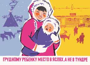 Это – из речи О.Ю.Шмидта, начальника Главного Управления Северного морского пути на VII Всесоюзном съезде советов («Известия», 01.02.1935), в ней точно обозначены приоритеты «социалистического преобразования» Советской Арктики. Вскоре (постановление ВЦИК от 10 августа 1935 г.) [«Собрание узаконений…» ] именно ГУСМПу, квазигосударству, основной целью которого было хозяйственное освоение Арктики, были переданы функции и полномочия созданного в первые годы советской власти Комитета содействия народностям северных окраин. «Комитет народов Севера», как его ещё называли, в меру своих небольших возможностей хоть как-то пытался не на словах, а на деле способствовать развитию малых северных народов в соответствии с их культурными традициями. Его ликвидация знаменовала победу сталинской линии на полное устранение этнических различий и интеграцию всех народностей и наций в единое советское общество. Основным проводником «линии партии» на Севере и стало ГУСМП, одной из задач которого стало «вовлечение северных народов в социалистическое строительство» и «расцвет» народов Севера, расцвет в большевистским понимании. Эти эвфемизмы прикрывали типично колониальные методы освоения Севера с целью использования его ресурсов, разумеется, без учёта интересов коренных народов. Много позже стало ясно, что «преобразования» по единым социалистическим лекалам губительны для их культуры, быта, хозяйства, для самого их существования. Но большевики всегда знали – «как надо», им и в голову не приходило, что эти люди могут иметь на своё будущее свой взгляд. И когда дело дошло до фактических реквизиций продуктов их труда, жестокой ломки традиций, обычаев, загона в колхозы и совхозы, насильственных помещений детей в ясли и школы, отбора оленьих пастбищ, охотничьих и рыбных угодий под промышленные и военные нужды, а позже – под добычу полезных ископаемых, северяне взбунтовались. При этом дело доходило и до вооружённого сопротивления, которое подавлялось бессудно и жестоко.