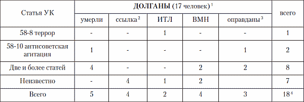 Даже поверхностная попытка установить родственные связи арестованных (отцы и сыновья, братья) говорит о том, что зачастую репрессиям подвергались все мужчины семей или их значительная часть.