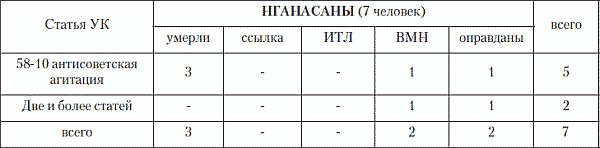 Сведения о нганасанах, подвергшихся репрессиям, содержатся в «Книге памяти жертв политических репрессий Красноярского края» и, как было указано выше, могут возрасти на 30–40 % при выходе заключительных томов «Книги памяти …».