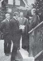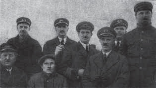 Командный состав «Красина». Слева направо: механик А.И.Мокк, помощник капитана Ю.К.Петров, механик М.А.Ермолаев, ст. механик М.И.Ершов, капитан К.П.Эгге, помощник капитана Б.М.Бачманов, механик А.В.Бычков, помощник капитана А.Д.Бреннкопф [Шпанов ]
