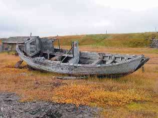 Остатки катера типа «дори» в порту Амбарчик. Фото Ф.Романенко, 2005 г.