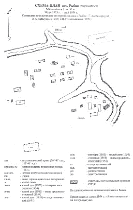 Группа консервации работала целых два года, что говорит о том, что оборудования, продовольствия, одежды, строительных и горюче-смазочных материалов в Рыбак было завезено с большим запасом – средств на поиски радиоактивного сырья не жалели! Метеорологическая станция экспедиции ещё весной 1952 года была передана Управлению полярных станций и связи ГУСМП, и 28 июля на неё прибыл метеоролог Л.А.Каймук, 20 мая 1953 года его сменил Н.Г.Николаев. Полярная станция «Рыбак» была закрыта 15 мая 1954 г. На плане 1954 года Н.Г.Николаев сделал примечание: «Лагерь в настоящее время пустует». К тому времени число строений в лагере уменьшилось на один большой барак, строение средних размеров и три балка, очевидно, разобранных на дрова (та же участь постигла один жилой дом и несколько балков в посёлке) [РГАЭ, ф. 9570, оп. 2, ед. хр. 3354 ].