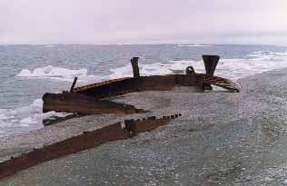 На галечной косе валяется множество бочек из-под горючего, а у береговой линии лежат остатки двух металлических барж – от одной, разрезанной на куски, осталась одна носовая часть, а другая почти полностью занесена песком и галькой (см. фото). На краю захламленного пространства, как последний памятник порту, возвышается отрезанная кормовая часть металлического лихтера «Урал». В 1950-х годах он использовался здесь для каботажных перевозок.