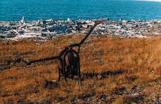 Накануне мы ночевали у бывшего зимовья Двуречье, где сразу обратили внимание на большой моток ржавой колючей проволоки и брошенную буровую 1970-х гг. В этом районе, в отличие от окрестностей Певека, буровые встречались редко.