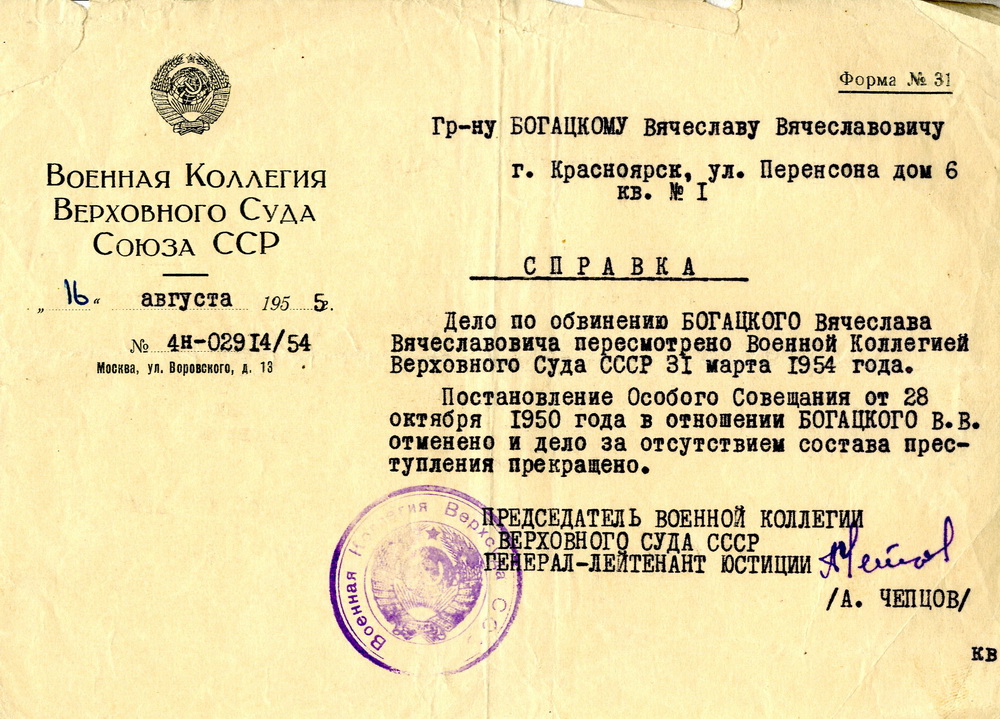 Источники: МКУ «Красноярский городской архив». Документы личного фонда инженера-геофизика, доктора геолого-минералогических наук В.В.Богацкого.