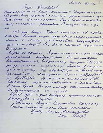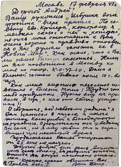 В августе 1943 года Андрей Платонович писал старинному знакомому А.И.Вьюркову, находившемуся в эвакуации в Кирове, бывшей Вятке: