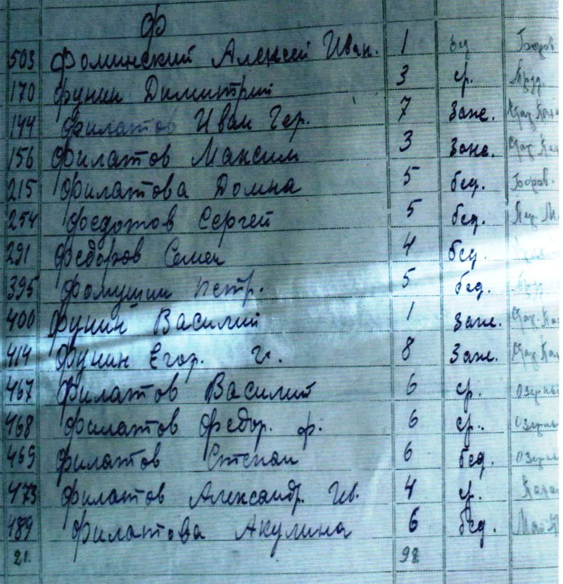 Однажды задумались: почему бы нам такую же работу не делать по раскулаченным? Это немного сложнее, потому что документы находятся в основном не в Красноярском, а в районных архивах, есть проблемы с административным делением края — районы делились, срастались, переименовывались, и иногда сведения об одной и той же семье рассредоточены по разным архивам.