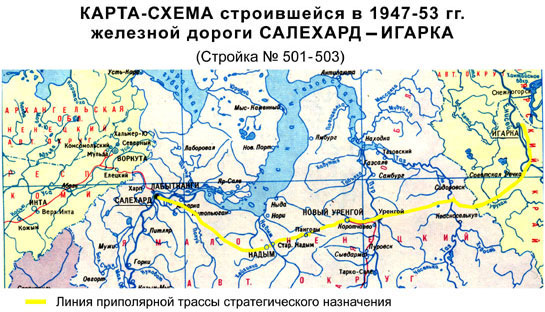 Строительство железной дороги Салехард-Игарка в 1953 г. было законсервировано, а позже прекращено. Половина трассы стала «мёртвой дорогой», брошенной и забытой, а идеи и цели великой стройки (в числе прочих грандиозных задумок тех лет) попали на «свалку» истории.