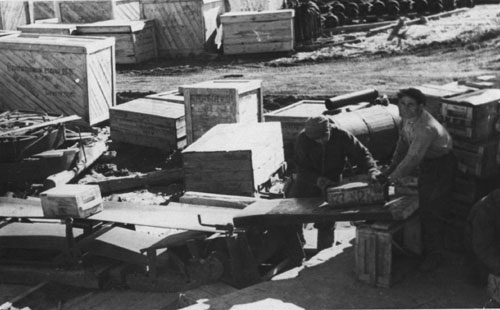 Е.Б. Григорьян на разгрузке первой баржи недалеко от бремсберга.