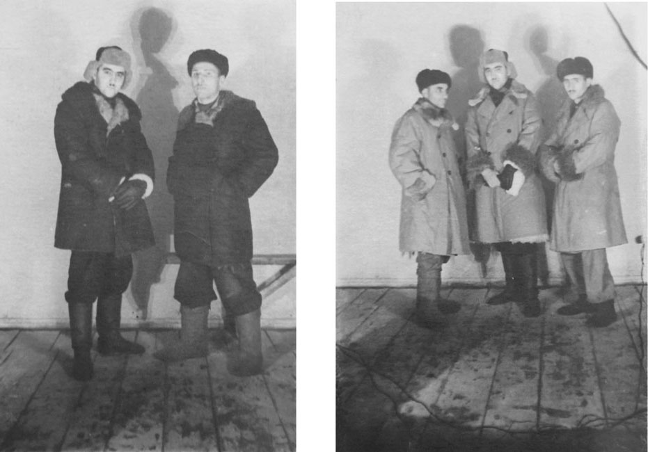 Работа в Игарском морском порту. Я с Михаилом Тлехасом и Александром Таросяном (бригадир погрузо-разгрузочной бригады). На нас – японские офицерские шубы, с которыми пришла полная баржа. Давали их только бригадирам.