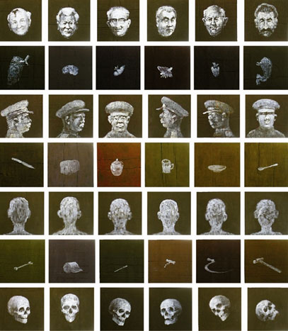 Текст автора: «Жизнь любого человека в известной степени происходит внутри него, в его уме, памяти, чувстве. Степень свободы этого «внутреннего человека» считается исторически обусловленной и в иные времена она бывает сокращена. Бывает и полностью сокращена: так в словах «Народный комиссариат внутренних дел», аббревиатуре «НКВД» звучит, как слышится, категорический императив сверхдозволенности и железная компетенция, кого надо, «молодого советского» государства по отношению к «внутри» своих «рабочих и крестьян, а также трудовой интеллигенции». Вот, по команде ушёл колхозник в вертухаи и ушёл навсегда, «кру-гом», а жизнь угасла внутри. Шесть генеральных секретарей КПСС (тоже аббревиатура: коммунистическая партия Советского Союза), последовательно: Сталин, Хрущёв, Брежнев, Андропов, Черненко, Горбачев. Первый усмехнулся, последний улыбнулся, а внутри – наше всё внутри, как у Кащея бессмертного – изъян, патология, ГУЛАГ, СХБАЧГ. Ожидание пайка и в счастливой бедности приятие внутрь чая чёрного байхового грузинского с сахаром. Куда и как ни посмотри, везде суровая норма «по справедливости», а свидание и прогулка по внутреннему распорядку. Серп, молот, рулон туалетной бумаги, авторучка, гаечный ключ и штопор – одни вещи с высокоидейным содержанием, другие же - с враждебным идеологическим подтекстом. И вот, всё это туда, - прах к праху, ссыпалось. Какие были «плечом к плечу» братья и сёстры такие и канули безликие и безымянные…