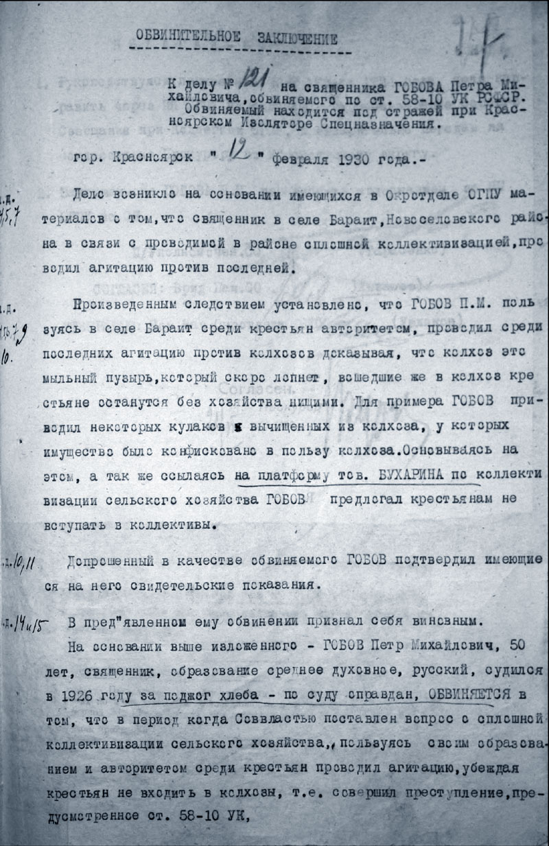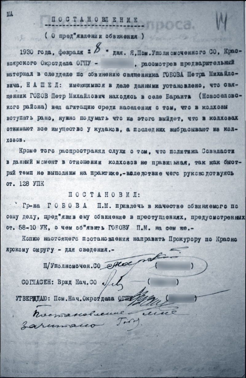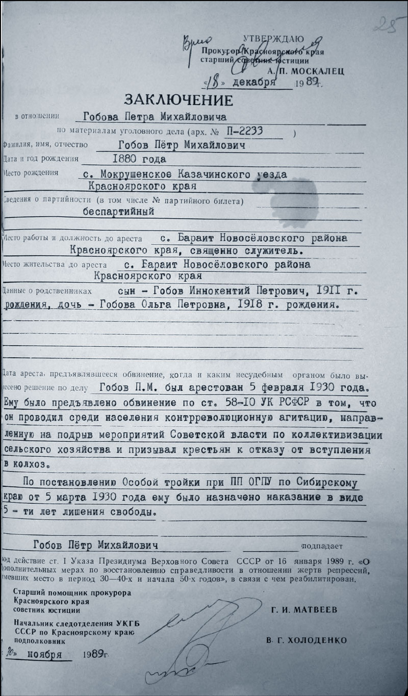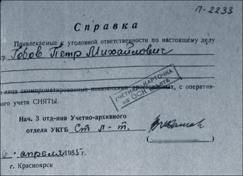 Архивно-следственное дело Гобова Петра Михайловича