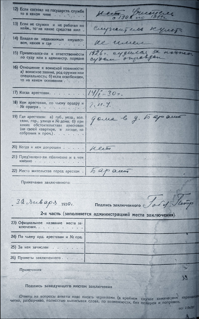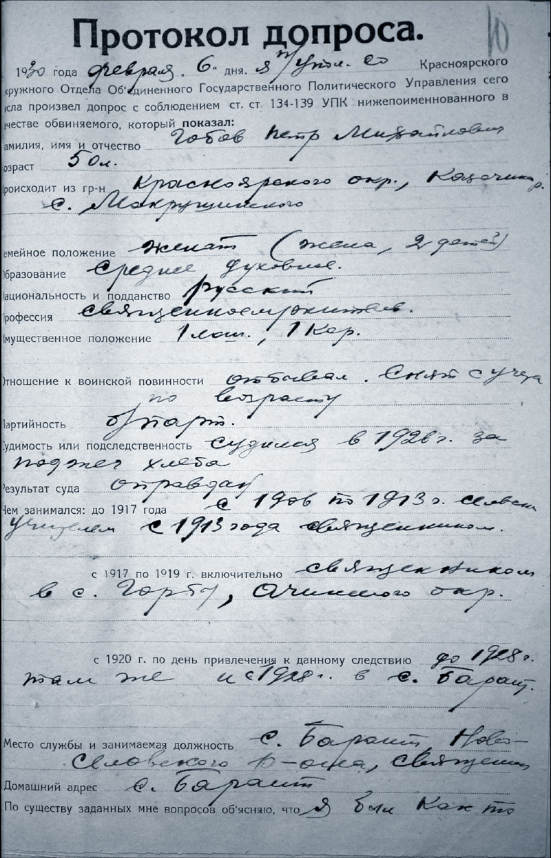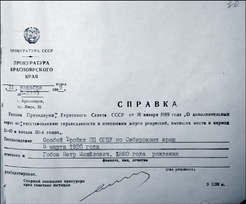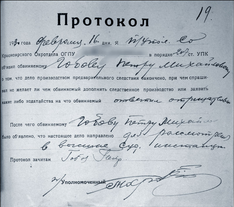 Архивно-следственное дело Гобова Петра Михайловича