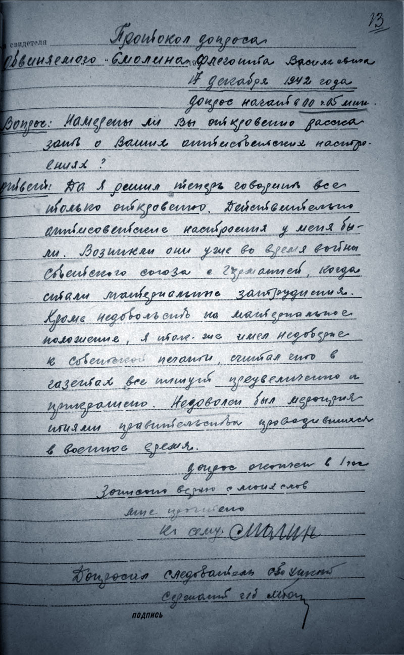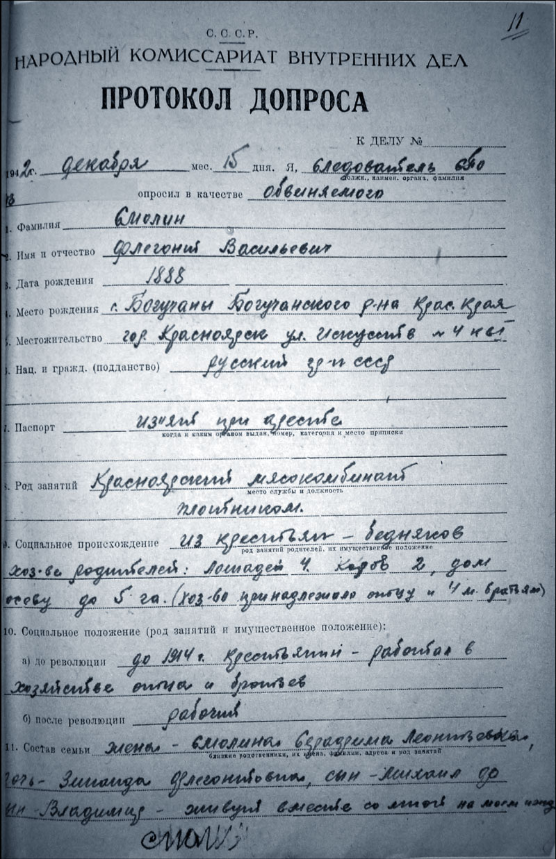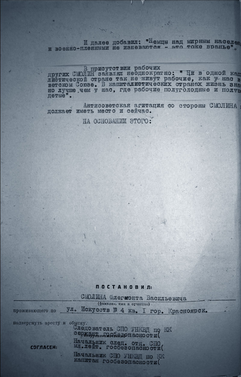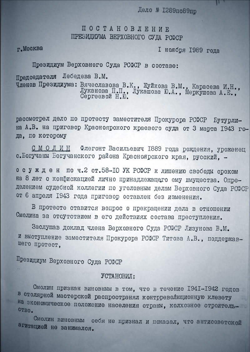 Архивно-следственное дело Смолина Флегонта Васильевича