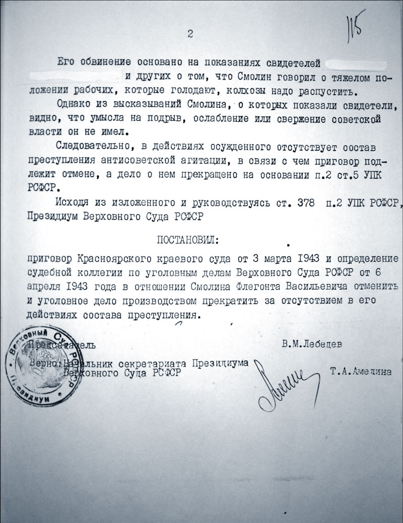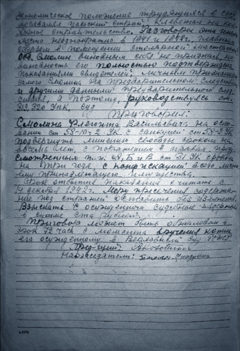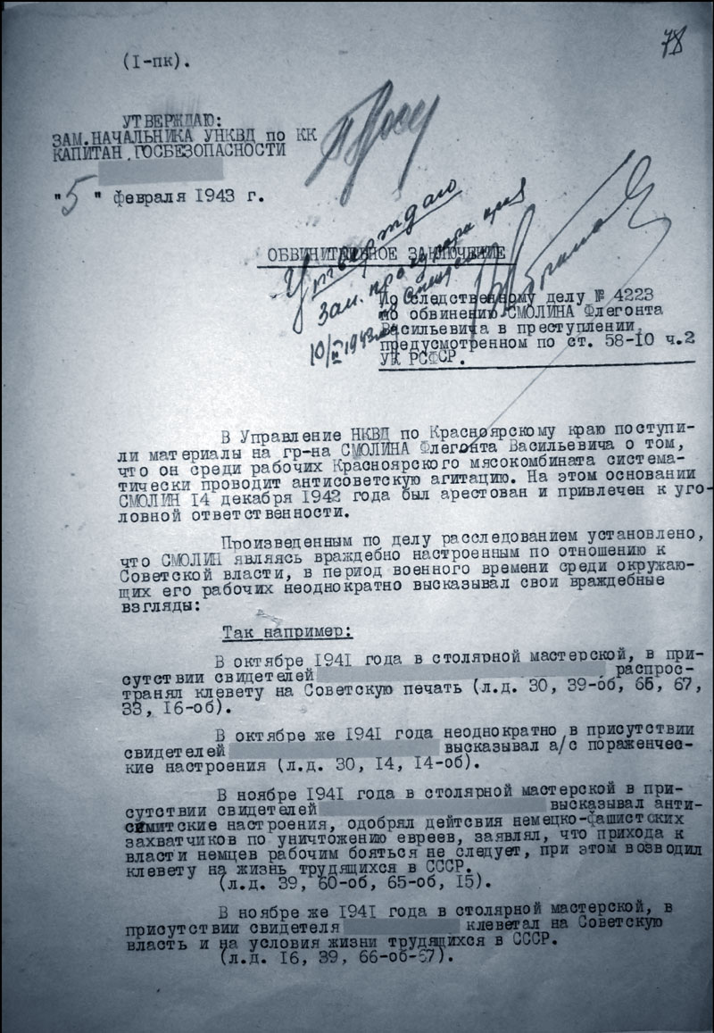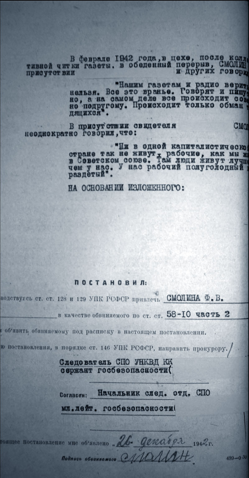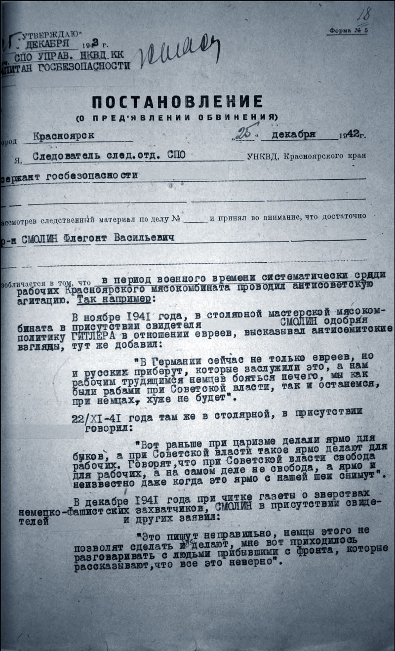Архивно-следственное дело Смолина Флегонта Васильевича