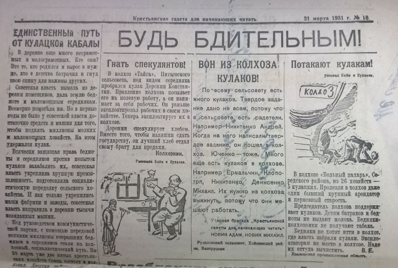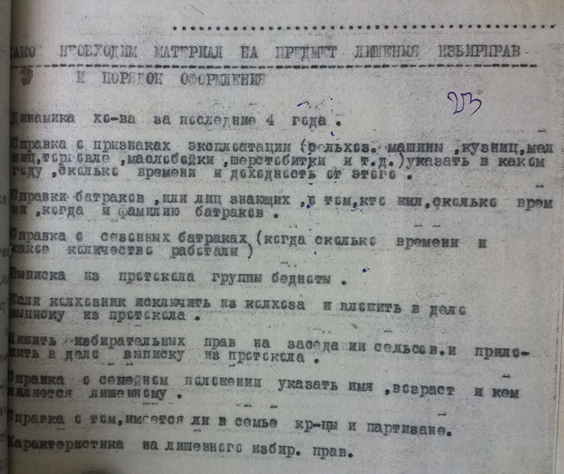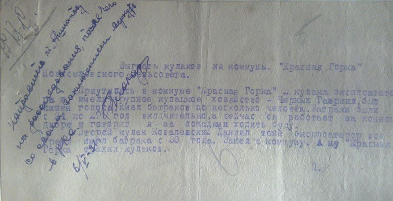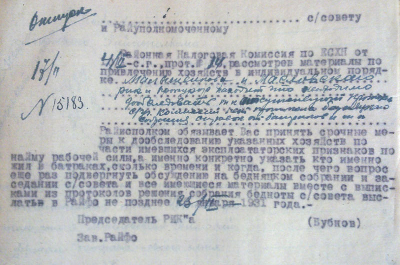 Руководящие указания райисполкома о раскулачивании конкретных крестьян.