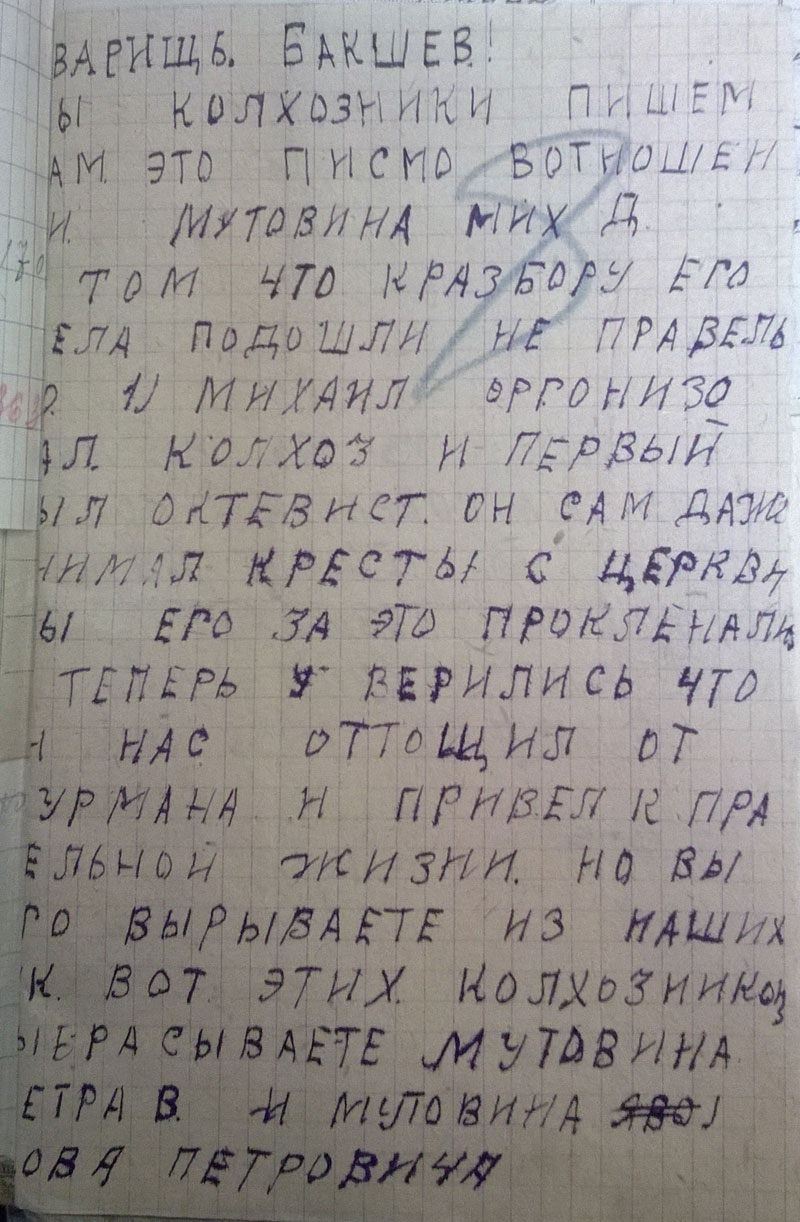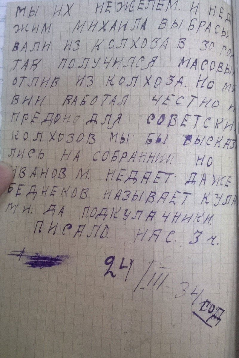 Одобрительное письмо. Жители д. Малеево заступаются за лишенца Артамона