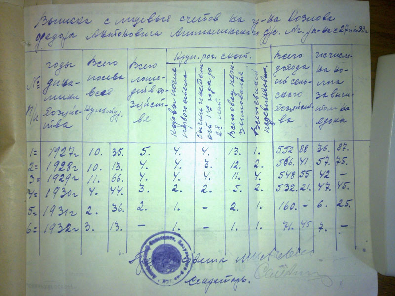Такой же результат был у обложенных твердым заданием. Вот динамика хозяйства единоличника, продержавшегося до 1932 года: из пяти лошадей не осталось ни одной, из четырех коров — одна, посевы уменьшились в три раза. Обычно «упорных твёрдозаданцев», дотянувших, несмотря ни на что, до 1932 года, высылали-таки из села, но эту семью, к счастью, эта судьба миновала. Либо уехали из села, либо вступили-таки в колхоз.