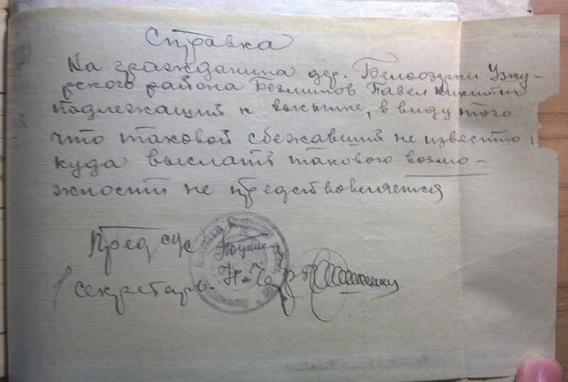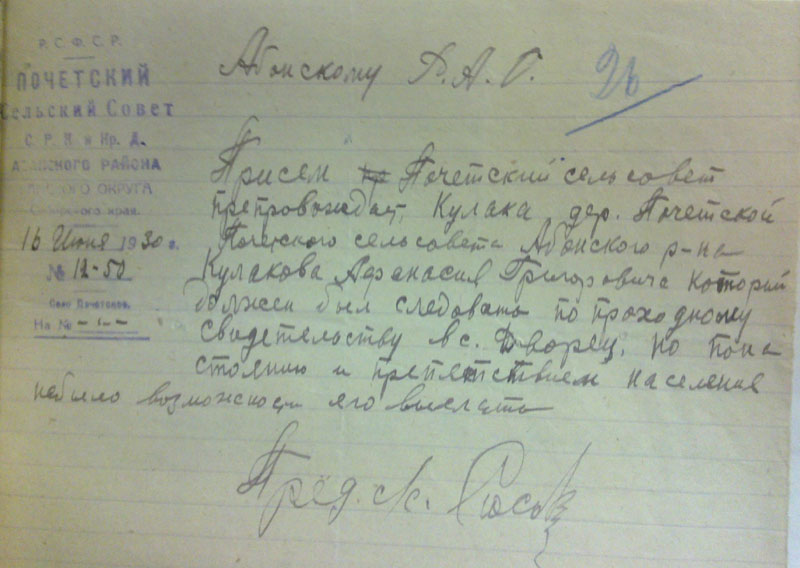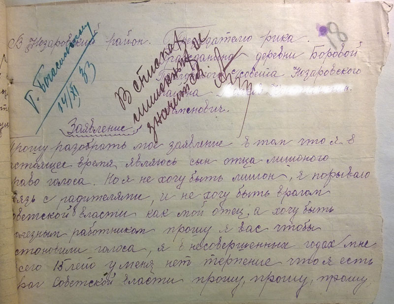 «Излагая жизниный процесс что я от ца порвал связ 1927 года» (Архив г. Ачинска,