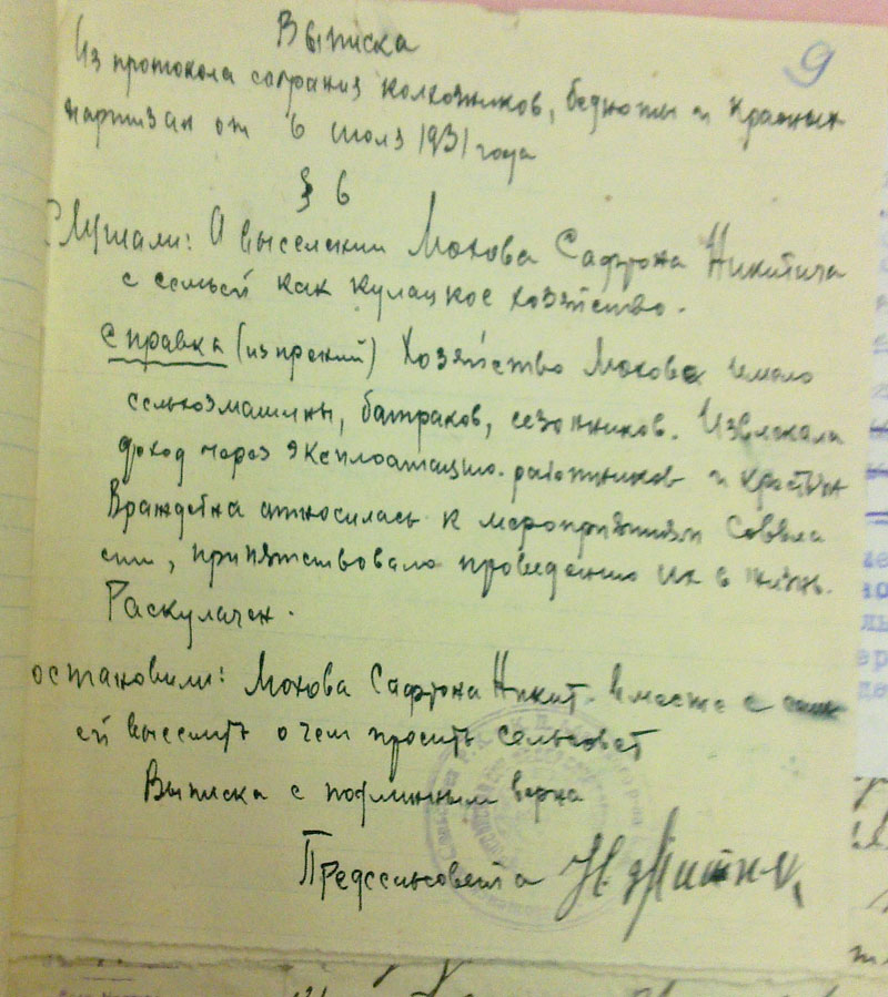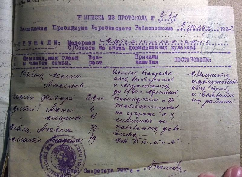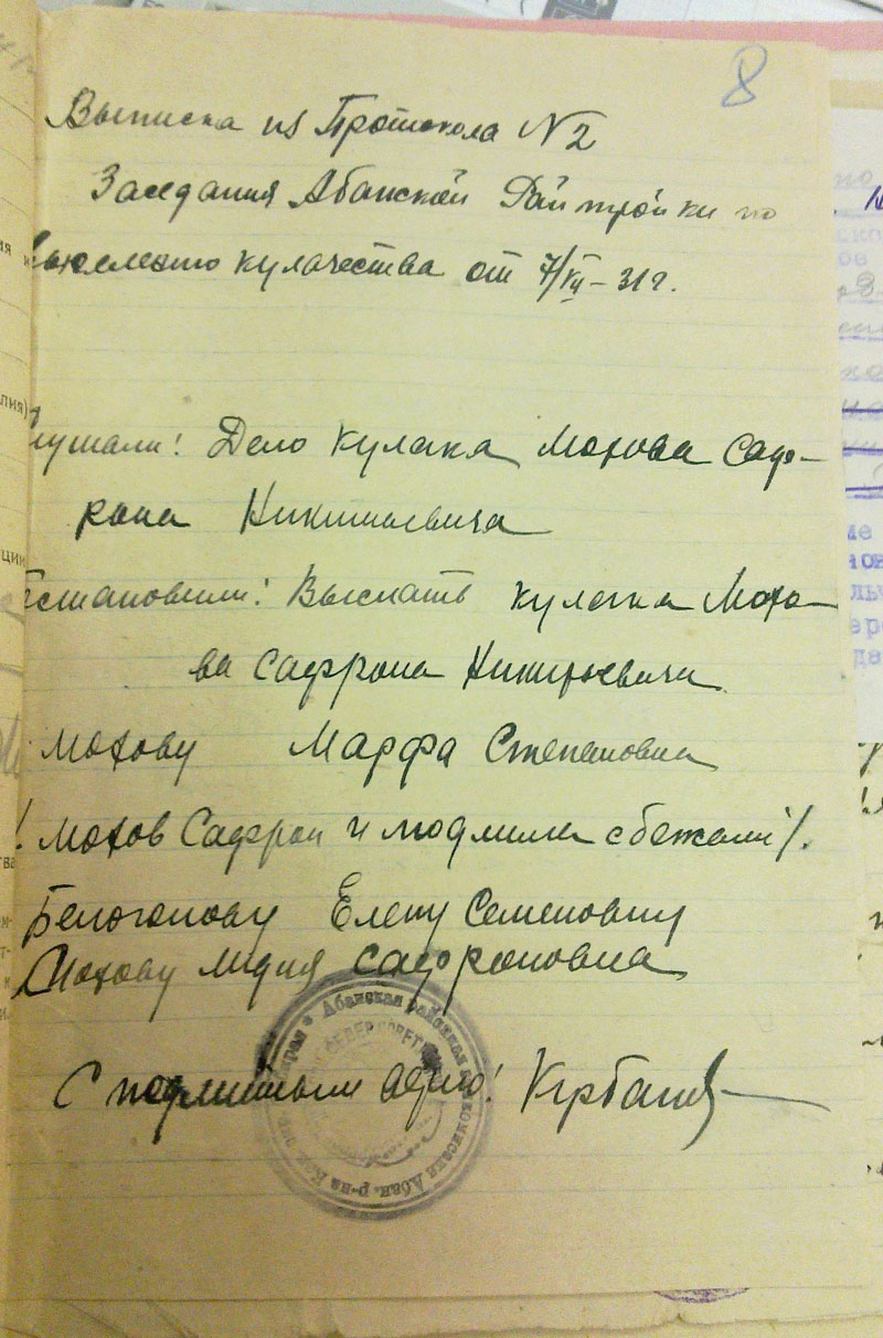 Протокол районной тройки по выселению кулаков выглядел примерно так: