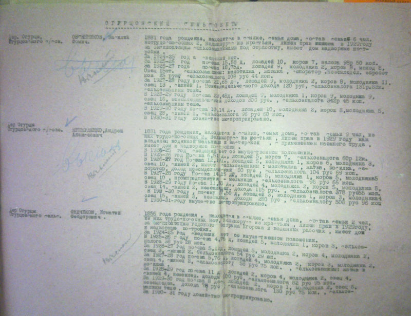 Когда протокол собрания бедноты поступал в сельсовет, на его заседании тоже, как правило, присутствовал уполномоченный из района, осуществляя контроль за выполнением плана. Окончательное решение принимали районные тройки или пятерки.