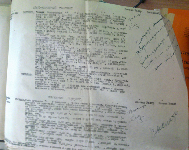 Но и сельсовет не имел права принять окончательное решение. Он всего лишь рассматривал «предложение бедноты» и оформлял его соответствующим образом. Например, если на «собрании бедноты» достаточно было голословно заявить, что такой-то имел батраков, то сельсовет уже был обязать оформить это справкой либо от имени самого батрака, либо от имени свидетеля, который видел работу этого батрака. В некоторых селах были люди, которые подписывали все или почти все такие справки от своего лица. С формальной точки зрения это не воспрещалось — райисполком следил только за тем, чтобы был необходимый комплект документов:
