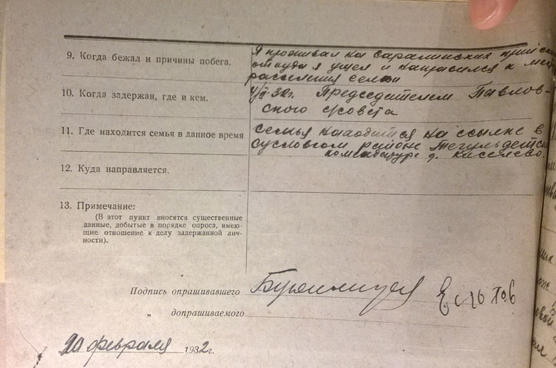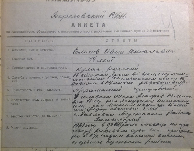 Многие крестьяне сбегали накануне высылки («самораскулачивались») или сбегали из ссылки. В Березовском районе даже завели специальный двусторонний бланк с анкетой для сбежавших кулаков.