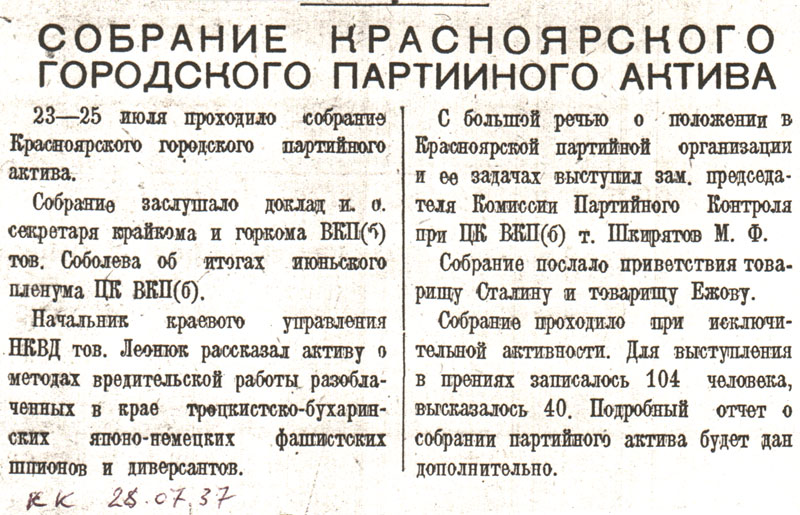 «Красноярский комсомолец», 28.07.1937 г.