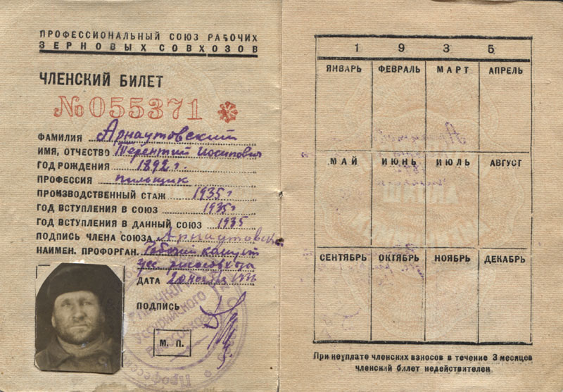 АРНАУТОВСКИЙ Терентий Иосифович. Род. в 1892 в станице Новомалороссийской (хутор Бузинка), Кубань. Русский. Проживал в ДВК. Арестован 13.11.1937. Обвинение в КРА. Осужден тройкой УНКВД по ДВК на 10 лет лишения свободы. Срок отбывал в Нижнепойменском отделении Красноярского ИТЛ (Краслаг) с 18.02.1937., прибыл владивостокским этапом. С 30.05.1938 переведён в Канский ОЛП, Краслага, 22.06.1938 этапирован в Норильлаг, 19.07.1938 возвращён в Канское лагерное отделение Краслага НКВД. Умер 11.08.1938 от пеллагры и гемоколита. Похоронен на кладбище около кирзавода (Канский ОЛП).