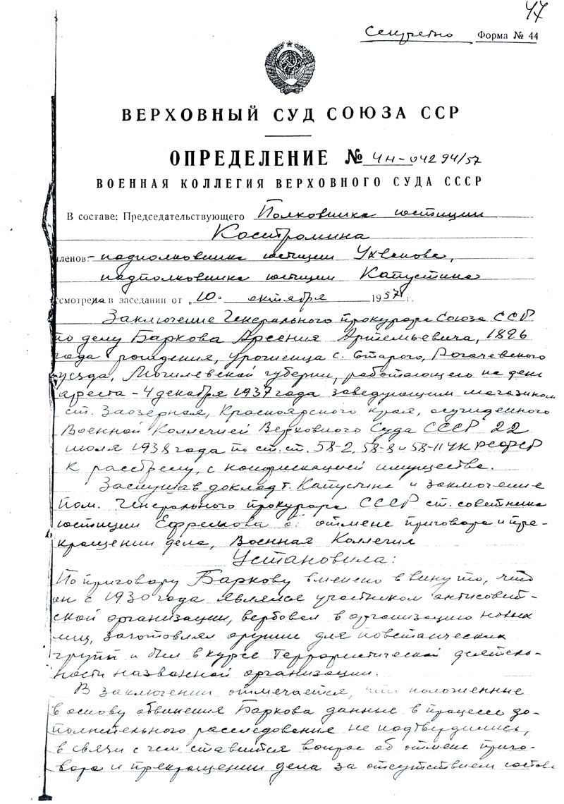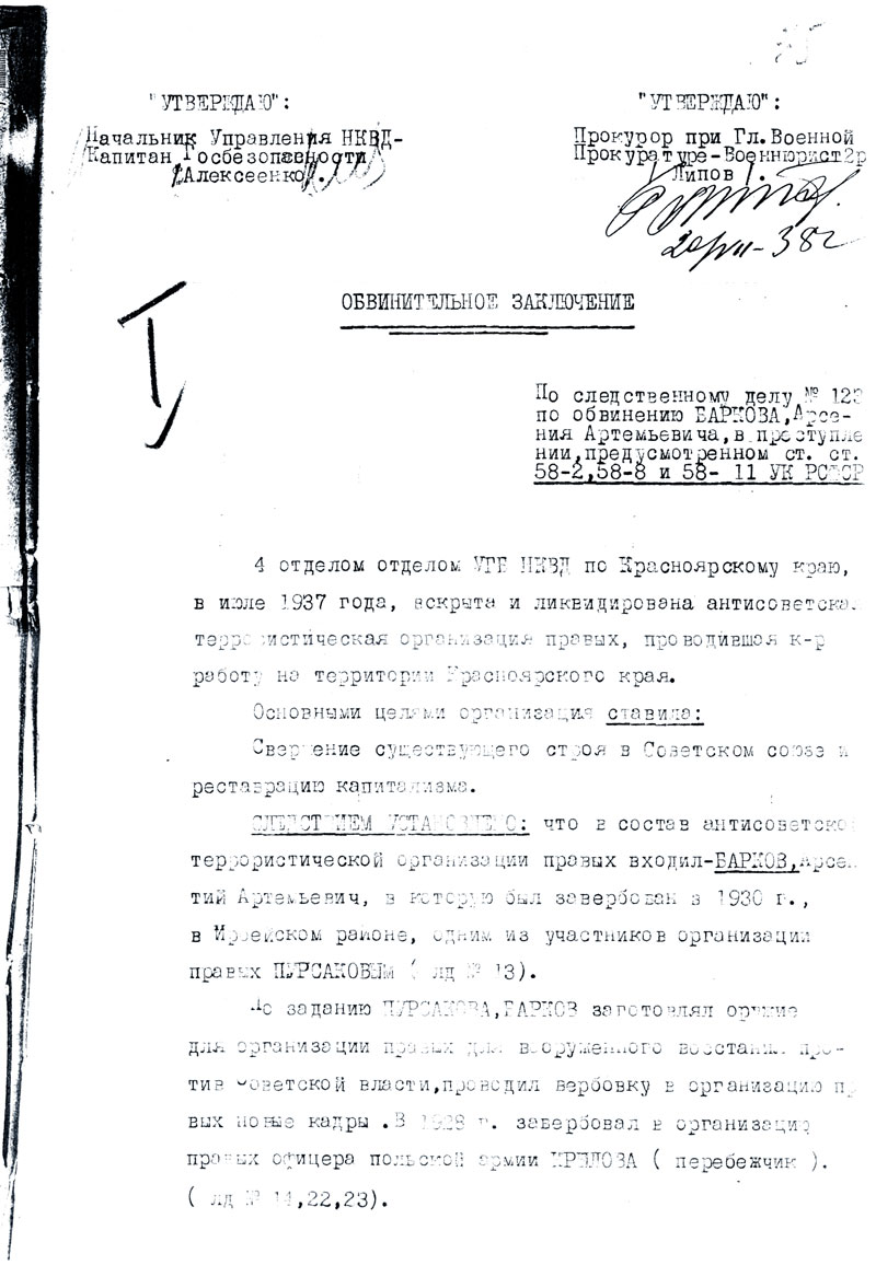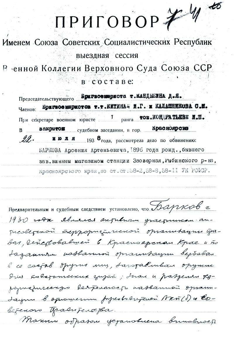 Барков Арсений Артемьевич. Документы