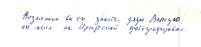 Возможно вы его знаете, дядю Володю. Он жил на Иркутской, фотографировал.