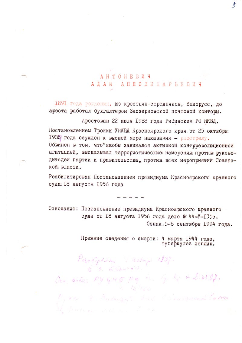 Реабилитирован Постановлением президиума Красноярского краевого суда 18 августа