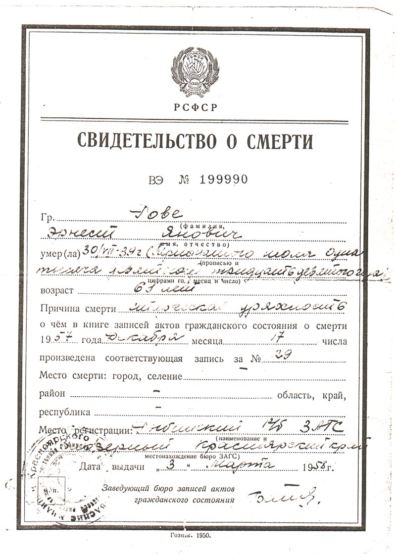 состояния о смерти 1957 года декабря месяца 17 числа произведена соответствующая