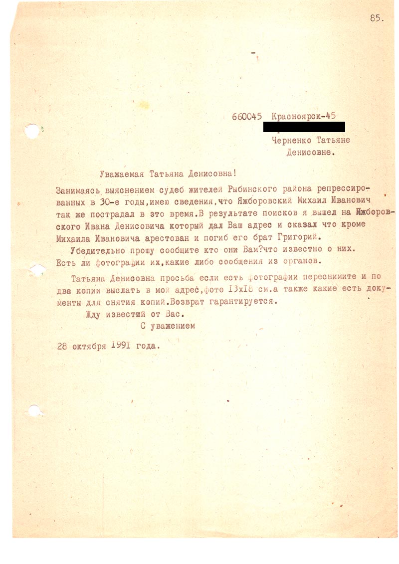 Занимаясь выяснением судеб жителей Рыбинского района репрессированных в 30-е