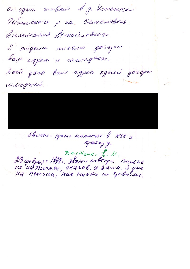 23 февраля 1992 г. звонил повторно, письма не написали, сказав, а зачем. Я уже на пенсии, нас никто не тревожит.