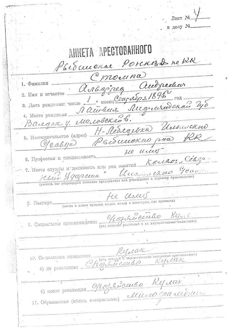 волости, латыш, беспартийный, проживавший в д. Н-Лебедевка Рыбинского района