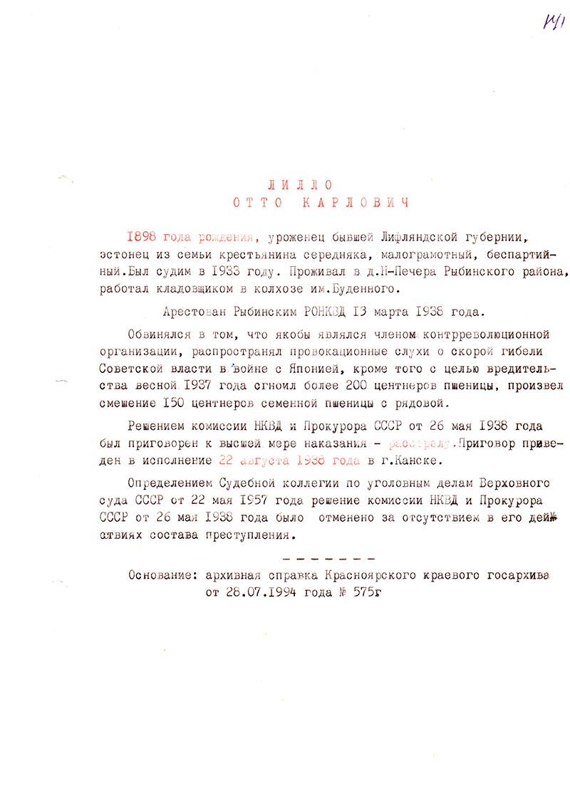 Основание: архивная справка Красноярского краевого госархива от 28.07.1994 года № 575г.