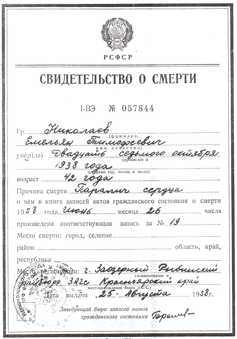 Если смерть гр. Николаева Е.Т. в Красноярском крае не зарегистрирована, то по