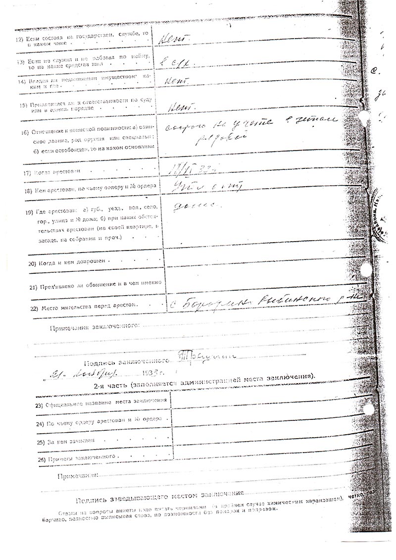 | 17) Когда арестован | 18/XI-33 г. |