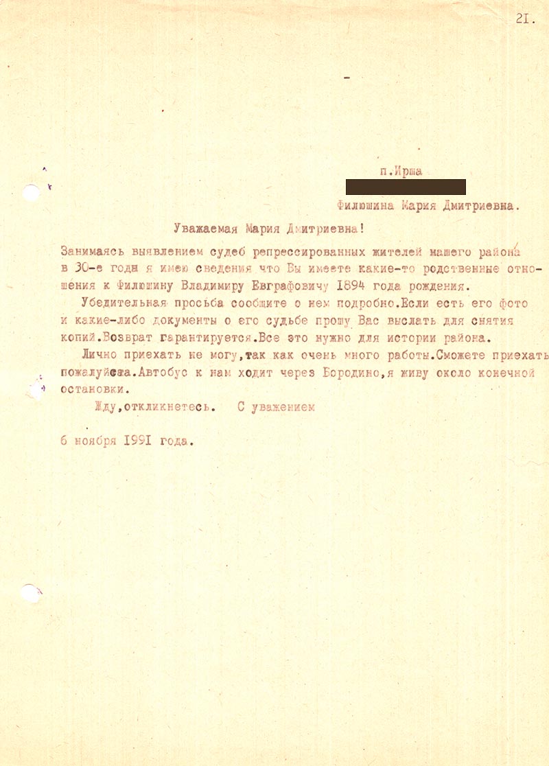 имею сведения что Вы имеете какие-то родственные отношения к Филюшину Владимиру